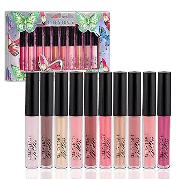 Enchante Ellen Tracy 10 Pc Lip Gloss Collection, Shimmery Lip Glosses for Women and Girls, Long Lasting Lip Gloss Set with Rich Varied Colors, Great Holiday and Birthday Gift