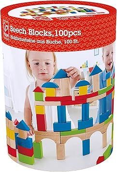 Hape Award Winning 100 PCs Wooden Building Block Set with Solid Storage Container| Learning Educational Toys for Kids