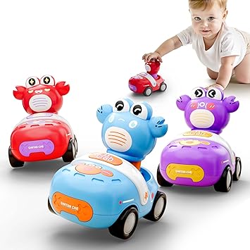 iPlay, iLearn Dinosaur Press to Go Car Toys for Toddlers 1-3, Baby Dinos Racing Cars, Infant Play Whistle Vehicle Set, Push Go Friction Car for 6-9-12-18 Month, 1-2 Years Old Boys 1st Birthday Gift