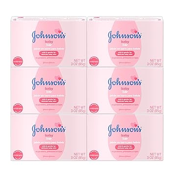 Johnson’s Baby Body Soap Bar, Gentle for Baby Bath and Skin Care, Hypoallergenic and Dermatologist Tested, Paraben Free, Phthalate-Free, Dye-Free, 3 oz (Pack of 6)