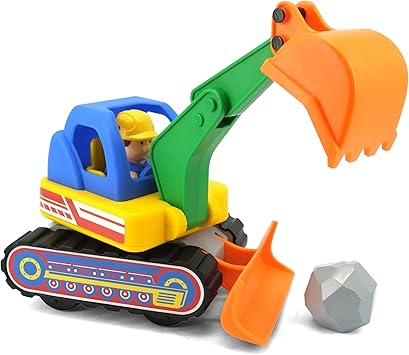 Kiddieland My First Excavator Motorized Light & Sound Construction Truck with Auto-Stop, Removable Driver Figure and Rock, Toddler Toy for Kids Ages 1 2 3+