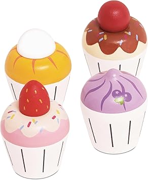 Le Toy Van – Adorable Honeybake Petit Four Cupcakes | Childrens Wooden Food Pretend Toy Cakes | Birthday Cake Or Afternoon Tea Role Play Toy (TV331)