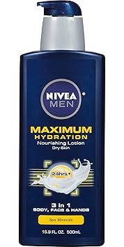 NIVEA Men Maximum Hydration 3-in-1 Nourishing Lotion – Body, Face, Hands – 16.9 fl. oz. Pump Bottle