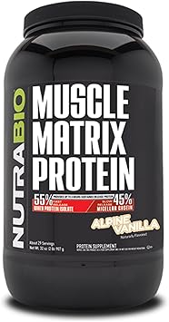 NutraBio Muscle Matrix Protein Powder – 25g of Protein Per Scoop – Whey Isolate and Micellar Casein Combo for Fast and Slow Release – Vanilla – 2 Pounds, 28 Servings