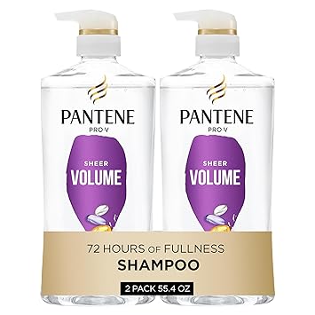 Pantene Shampoo, Sheer Volume – 72-Hour Fullness, Lightweight Nourishment with Pro-Vitamin B5 + Antioxidants, Fine, Thin, Color-Treated Hair, Paraben Free, Remove Build Up for Body & Shine, 27.7 Fl Oz