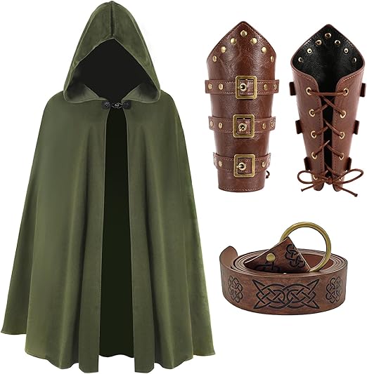 L’VOW Renaissance Cape with Hood Medieval Hooded Cape Halloween Sorcerer Hobbit Costume Cosplay