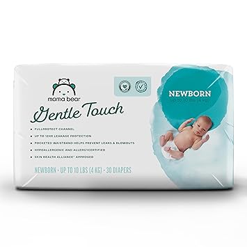 Amazon Brand – Mama Bear Gentle Touch Diapers, Size Newborn, Keeps Baby Dry, Skin Safe, Fragrance-Free, 30 Count