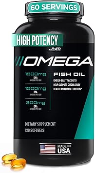 JYM Supplement Science Omega JYM Fish Oil 2800mg, High Potency Omega 3, EPA, DHA, DPA for Brain, Heart, & Joint Support 120 Soft Gels