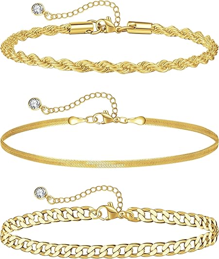 PROSTEEL Stainless Steel Chain Anklets for Women, Silver/Gold Tone, Ankle Bracelets Hypoallergenic, 8-10.5 Inch Adjustable, Come with Box