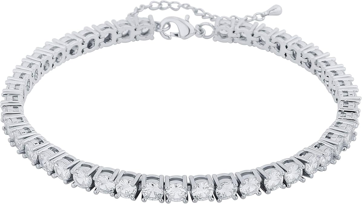 TOPGRILLZ Tennis Ankle Bracelet Gold Anklet Adjustable with Extension 14K Gold Plated Iced out Diamond 3-6mm Fashion Stylish Foot Jewelry for Women