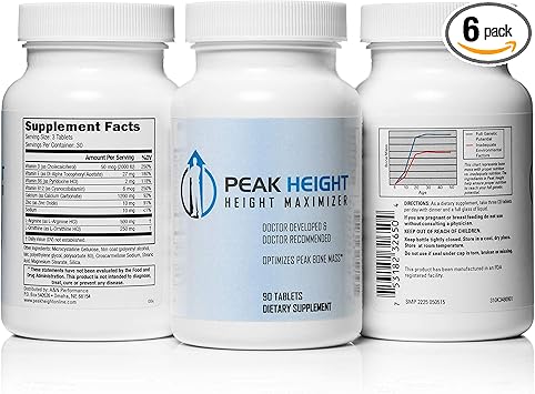 1 Grow Taller Height Pill Supplement-Peak Height 6 Month Supply-Height Supplement-Doctor Recommended, 90 tablets( pack of 6)