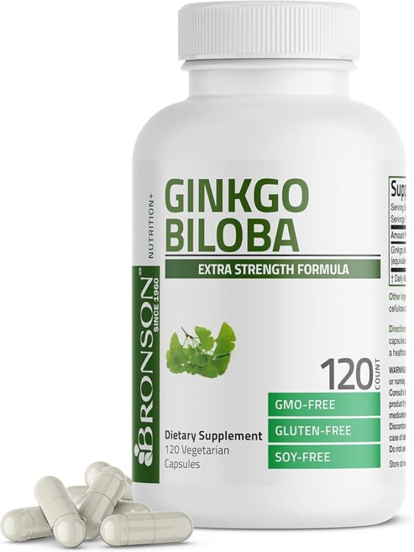 Bronson Ginkgo Biloba Extra Strength Supports Brain Function & Memory Support, 120 Vegetarian Capsules