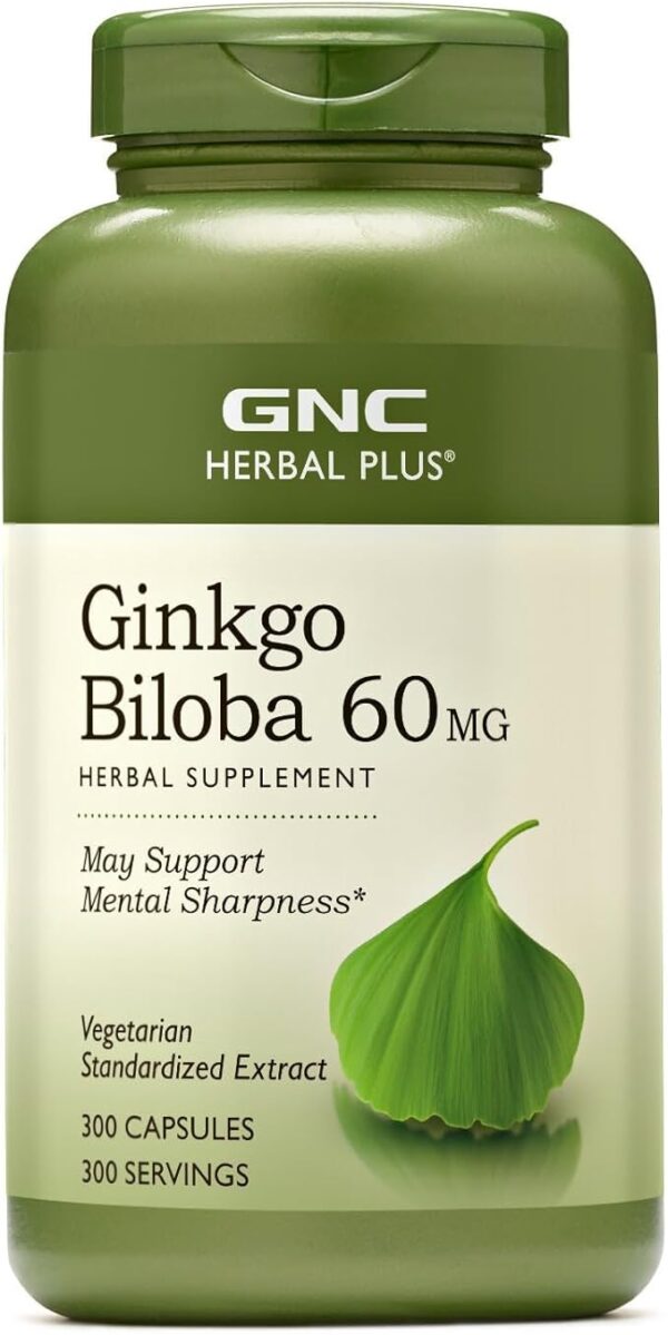 GNC Herbal Plus Ginkgo Biloba 60mg Supplement, Vegetarian, Supports Mental Sharpness, 300 Servings