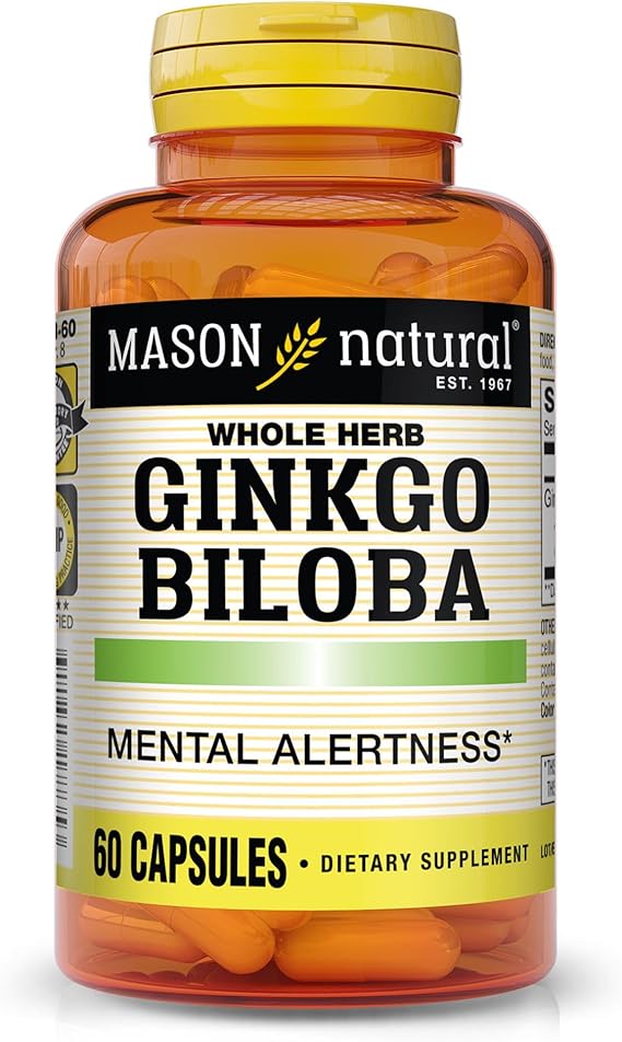 Mason Natural Ginkgo Biloba, 1 Month Supply, Helps to Improve Mental Alertness & Support Optimal Brain Function, 60 Capsules